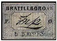 - ↑ "Price of US Stamp Scott 5X1: 1846 5c Brattleboro Postmasters Provisional. Page 1". USPhila.com. Retrieved March 12, 2020.