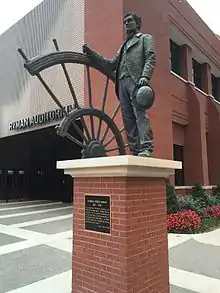 Ryman died in 1904 at his home in Nashville.[5] An estimated 4,000 people attended his funeral, held at the Tabernacle on Christmas Day. The Rev. Jones spoke at the service and once more proposed changing the Tabernacle's name to the Ryman Auditorium.[14] He asked all who agreed with the suggestion to rise. According to The Nashville American's December 26, 1904, account of the service, "as one person, the thousands who heard him were on their feet."[7][15] Tom Ryman's final resting place is in Mount Olivet Cemetery (Nashville).