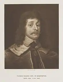 - Thomas Hamilton, 3rd Earl of Haddington (1626–1645), who married Henriette de Coligny, a daughter of Gaspard de Coligny, Duc de Châtillon in 1643.[5]