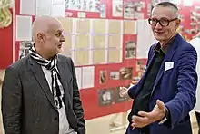 ![]() Thomas Hirschhorn at the "Robert Walser-Sculpture", Biel/Bienne, 2019 (photo: Enrique Muñoz García) | |