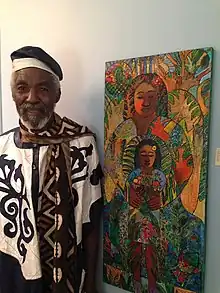 Reddy's artwork as a Social Realist painter that reflect the traditions of the Harlem Renaissance are held in permanent collections at the Tweed Museum of Art in Duluth, Minnesota and University of North Carolina Charlotte's Murrey Atkins Library.[8] "Reddy's mixed media paintings largely use acrylics and he has added natural materials, such as paper, sand, wood, fabric and clay. He is also known for his murals and public art projects.[9] "His work is inspired by travels throughout the Caribbean and seacoast islands of the southern United States, and by the migrations of people of African and Caribbean descent to the Americas," according to the University of North Carolina Charlotte Africana Studies Department where Reddy was a visiting artist in 2008–2009. "His paintings are richly textured two-dimensional narratives with a spiritual and universal quality that expresses a profound appreciation for culture, which he defines as shared human values."[9]