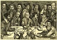 The candle is lighted, we cannot blow out, joint portrait of 15 Protestant reformers c.1640, published by Thomas Jenner