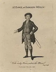 Lowe sang as a child: in May 1732 he sang in Handel's oratorio Esther at the King's Theatre. His career as a tenor is first known in August 1740, when he took part in the masque Alfred by Thomas Arne, at its first performance at Cliveden, country home of Frederick, Prince of Wales.[1] He first appeared at Theatre Royal, Drury Lane in London in September 1740, as Sir John Loverule in The Devil to Pay by Charles Coffey. During his first two seasons there he played Macheath in The Beggar's Opera, Bacchanal in Arne's Comus and Arne's songs in the incidental music for several productions.[2]