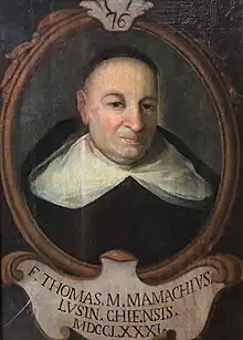 Thomas Maria Mamachi (December 4, 1713 in Chios – June 7, 1792 in Corneto, near Montefiascone), was an Italo-Greek Dominican theologian and historian.
