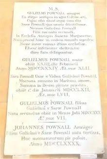 2. Pownall, Charles Assheton Whately (1805). Thomas Pownall, M. P., F. R. S., governor of Massachusetts Bay. H. Stevens, son & Stiles. p. 2. Retrieved 14 October 2017.