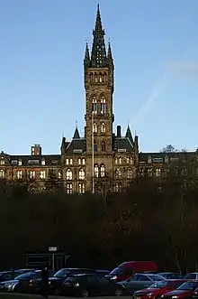 Thomas Reid D.D. (17101796), was Professor of Moral Philosophy at the University of Glasgow and founder of the Scottish common sense movement in philosophy. Remarkably, his tombstone is to be found in the vestibule of the main building of Glasgow University and directly under the 85m (278 feet) high tower of the Gilbert Scott Building. Reid’s remains were originally laid in Blackfriars Church burial-ground, on the grounds of Glasgow College in the High Street, Glasgow. The tombstone was removed when the College moved to Gilmorehill in 1870. It was placed in its present position when the building of the Tower above it was begun, thus forming a fitting ‘monument’ to Reid. In comparison, the Scott Monument in Edinburgh is only 200.5 feet (61.1 m).