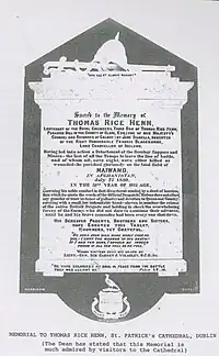 Henn was unmarried. A stained-glass window in his memory was placed in Rochester Cathedral by the Corps of Royal Engineers, and a memorial tablet was also placed in St. Patrick's Cathedral, Dublin.[2]