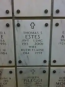 On December 29, 2001, Estes died of congestive heart failure in the Freedom Village Nursing Center in Bradenton, Manatee County, Florida. He was aged 88 years, 340 days. He is buried at the Arlington National Cemetery in Arlington, Virginia.<[5]