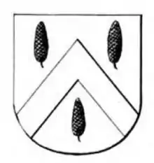Coins minted in Riga between 1528 and 1539 bore this family coat of arms of Archbishop of Riga Thomas Schöning - two beams at angle with three Linden trees.