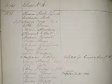 In Washington, Smallwood worked near Washington Navy Yard where he operated a small shoe making and repair business. Acquaintances began to refer to him as "Smallwood of the Yard" although surviving muster and pay records do not show him directly employed by the navy.[7] He also attended Ebenezer Methodist church on Capitol Hill in the 1820s and 1830s where many employees of the navy yard worshiped.[8][9] At Ebenezer, Smallwood and his family found fellowship, and camaraderie and had the opportunity to take part in a progressive and active religious community. Many African Americans during this period found Methodism congenial. The appeal of this relatively new religion was both the emphasis on individual personal conversion, and in theory, the equality of all the faithful before God. Slaves and free people of color took part in adult classes, religious instruction, and gained the opportunity in church sponsored adult classes to learn to write and read scripture. Attendees included a wide range of community leaders including diarist Michael Shiner, Moses Liverpool, Nicholas Franklin and Sophia Bell all leaders in the African American community.[10] In 1836 Thomas Smallwood was in the same adult class no.16, as Michael Shiner's wife Phillis.[11][12]
