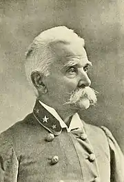 Munford was appointed to duty as a brigadier commander by Fitzhugh Lee on November 9, 1864, but, despite being described as a general in several sources, he was never officially commissioned and confirmed as a brigadier general.[2] He took command of Fitzhugh Lee's cavalry division late in the war with that general's promotion to cavalry corps commander.[3][4] and fought at Five Forks, High Bridge, and Sailor's Creek.[1] He led men away from the Army of Northern Virginia prior to General Robert E. Lee's surrender at Appomattox Court House and escaped with a goal of reaching North Carolina to link up with the army of General Joseph E. Johnston during the Carolinas Campaign.[5] However, hearing that Johnston had since surrendered, Munford dispersed his force after reaching Lynchburg, Virginia.[3][5]