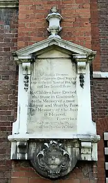 Thomas Twining died in 1741. He was buried at St Mary's Church, where there is a memorial to him, at the north-east corner.[1]