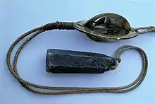 The Massey log consisted of a rotating metal screw which turned as the ship moved through the water.[5] The revolutions of the screw, or ‘rotator’ were registered on dials, which were part of the mechanism in the water. The purpose of the ship's log (or Chip log) was to measure the distance travelled by a ship through the water, crucial information in maritime navigation.[6] An instrument capable of measuring distance accurately was vital, alongside a compass, a clock and maritime charts in the safe and accurate navigation of the seas.