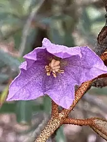 Thomasia angustifolia, commonly known as narrow-leaved thomasia,[2] is a species of flowering plant in the family Malvaceae and is endemic to the south-west of Western Australia. It has densely hairy young stems, narrowly oblong, wrinkled leaves and pinkish-purple, bell-shaped flowers.