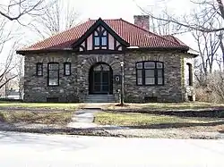 Located in the Tourtellotte Memorial High School (North Grosvenordale, CT), the Memorial Room Museum collection is maintained by the Thompson Historical Society. The museum and its contents were donated by Dr. and Mrs. Tourtellotte in 1909, to honor their two deceased daughters Lucy and Hattie Tourtellotte. The museum underwent a thorough renovation in 2009.[4] Also hosted within the Tourtellotte Memorial High School and managed by the Thompson Historical Society are the Ramsdell Transportation Collection[5] (a collection of railroad photographs donated by Dale King[6]) and the Kenney Store and Post Office Exhibit (a restoration of the original building's interior, donated by Glennyce Kenney).[7]