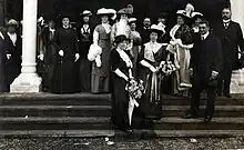 In early 1897, Queen Regent Emma appointed Thora van Loon-Egidius and Baroness Van Knobelsdorff-van Pallandt as dame du palais for the future Queen Wilhelmina. At that time, this was an unpaid position in the court, with a rank between grandmistress and lady-in-waiting. As dame du palais, she accompanied the Queen during her visits to Amsterdam, she was her representative in Amsterdam and she helped determine who could have an audience with the Queen in the Royal Palace of Amsterdam.[1] She started a diary in the year of the young queen's inauguration, in which she also wrote about her experiences at court and her presence at the queen's wedding in 1901. She represented the queen, among other things, during the opening of the exhibition De Vrouw 1813–1913 and accompanied her when Wilhelmina visited the exhibition a few months later.