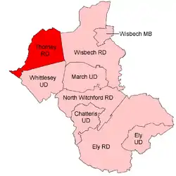 In 1965, when Isle of Ely was merged with Cambridge to form Cambridgeshire and the Isle of Ely, Thorney RD was instead transferred to the administrative county of Huntingdon and Peterborough.