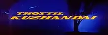 Thottil Kuzhandhai (pronounced [toʈʈil kuɻan̪ðaɪ] transl.Cradle child) is a 1995 Indian Tamil-language crime film directed by S. P. Muthuraman. The film stars Ramki and Ranjitha, with Anandaraj, Janagaraj, Vinu Chakravarthy, Kovai Sarala, Vadivukkarasi, Vivek and Karan playing supporting roles. It was released on 24 February 1995,[1] and failed at the box office.[2] The film notably was the last directorial venture of Muthuraman,[3][4] and was a propaganda film promoting the Tamil Nadu government's thottil kuzhandhai scheme to prevent female infanticide.[5]