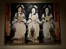 "Three Fujins" was an oil on canvas painting by Hung Liu, a Chinese-American painter born in Changchun, China in 1948,[1] and is currently on display at the Memorial Art Gallery in Rochester, New York. It was finished in 2015 and was put on display at the Memorial Art Gallery in 2016. The dimensions of the painting are 96 x 256 x 12 in (243.8 x 320 x 30.5 cm).[1]