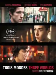 Three Worlds (French: Trois mondes) is a 2012 French drama film directed by Catherine Corsini. The film competed in the Un Certain Regard section at the 2012 Cannes Film Festival.[3][4]