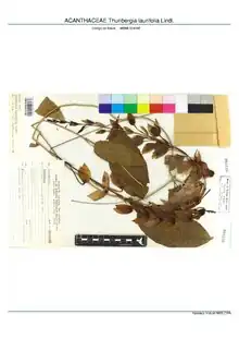 - ↑ USDA, NRCS (n.d.). "Thunbergia laurifolia". The PLANTS Database (plants.usda.gov). Greensboro, North Carolina: National Plant Data Team. Retrieved 10 December 2015.