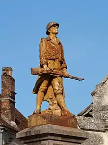 The World War I monument stands in the middle of the village square. It was inaugurated in 1925 after six years of preparations.[28] The statue of a resolute poilu is a cast of Charles-Henri Pourquet's sculpture, La Résistance, manufactured by the Foundry of Val d'Osne and also adopted by hundreds of other French villages for the same purpose.[29]