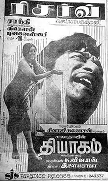 Thyagam (transl. Sacrifice) is a 1978 Indian Tamil-language drama film released starring Sivaji Ganesan and Lakshmi. It is a remake of the 1975 Hindi film Amanush.[2] Upon released the film was a blockbuster and highest-grossing Tamil film of the year.[1]