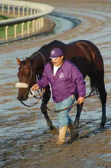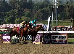 ![]() Tiago and jockey Mike E. Smith after winning the 2007 Goodwood Handicap. | |