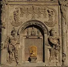 The pagoda features a veranda with banisters, yet is entirely solid with no hollow inside or staircase as some pagodas feature. Other ornamental designs include arched doorways and heavenly Buddhist guardians. Its design inspired that of later pagodas, such as the similar Ming Dynasty era Pagoda of Cishou Temple of Beijing built in 1576.