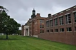 Ticonderoga High School is a historic high school building located at Ticonderoga in Essex County, New York. It was built in 1928-1930 and is a three-story, masonry neo-Georgian style building with a slate roof, concrete foundation, and brick walls. It features a semi-circular portico with Corinthian order columns and a balustrade and a copper polygonal cupola.[4]