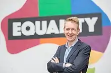 Tiernan Brady is an Irish-Australian political and LGBT rights campaigner who was involved in the campaigns to allow same-sex marriage in Ireland and Australia.[1] He was the executive director of the Equality Campaign in Australia, the successful national campaign for Australian Marriage Equality.[2] He was the political director of Ireland's successful "Yes Equality" campaign which saw Ireland become the first country in the world to introduce marriage equality by a public vote.[3] He was the Director of Gay HIV Strategies in GLEN – The Irish Gay and Lesbian Equality Network, and is Campaign Director of Equal Future 2018.[4]