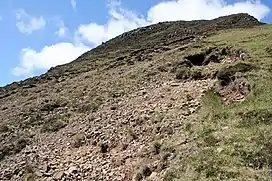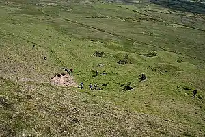 Evidence has been discovered of a Neolithic axe quarry at the foot of Tievebulliagh.[3] Flint axe heads fashioned from porcellanite that originate from this quarry have been found across the British Isles, from the Outer Hebrides to the south coast of England and across the rest of Ireland.[4] The site compares with the Langdale axe industry based in the English Lake District and the quarries at Penmaenmawr in North Wales, where large numbers of stone axes were manufactured.