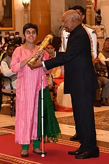 - Ram Nath Kovind, President of India calls her[23] while addressing the Nation during his speech on United Nations' International Day of Persons with Disabilities when she received the National Award, in 2017, for the Best Role Model. He recognized her achievements in the field of social service and adventurous activities.
