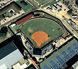 Aerial photo of old LSU Tiger Park softball stadium