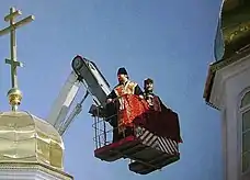 Bishop Tikhon of Archangelsk and Kolmogorsk blessing a cupola on the Church of the Vladimir Icon of the Mother of God