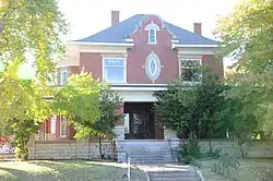The Tillman Shaw House is a historic house at 500 South 19th Street in Fort Smith, Arkansas. The house is an architecturally eclectic two-story brick structure, set on an artificially raised plot in a neighborhood of predominantly smaller houses. It has a basic American Foursquare structure, with stylistic embellishments borrowed from a number of styles, including the Mission Revival, Prairie School, and Colonial Revival. It was built in 1909 by Tillman Shaw, a prosperous saloon owner in the then-frontier town. Shaw's fortunes were ruined by the advent of Prohibition, and he was forced to sell the house in 1919.[2]