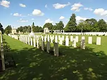 Tilly-sur-Seulles War Cemetery is a British Second World War cemetery of Commonwealth soldiers located in the village of Tilly-sur-Seulles, some 13 km (8.1 mi) south of Bayeux in Normandy. The cemetery contains 990 Commonwealth burials and 232 German graves.[1]