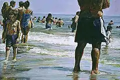 His most common subject matter is the architecture of New York City or scenes of pedestrians. Though a contemporary realism painter, his use of light in these works gives them an impressionistic quality. Dorn Townsend writes in the Manhattan Times, "The everyday aspects of the city have seldom been translated with such brio and glowing reverence" and "every color and every gesture stirs inside the viewer"[4]