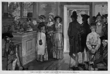 "Women at the Polls in New Jersey in the Good Old Times," engraving by Howard Pyle, appearing in Harper's Weekly in 1880