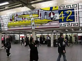 Times Square Mural is a mural by Roy Lichtenstein, fabricated in 1994 and installed in 2002 in Manhattan, New York City, United States. Located in the Times Square–42nd Street station of the New York City Subway, it is made from porcelain enamel on steel and measures 6 feet (1.8 m) by 53 feet (16 m). The work was commissioned by the Metropolitan Transportation Authority's Arts for Transit program.[1]