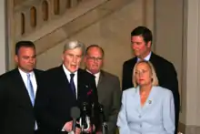 After graduating from law school, Kaine was a law clerk for Judge R. Lanier Anderson III of the United States Court of Appeals for the Eleventh Circuit, in Macon, Georgia.[8] He then joined the Richmond law firm of Little, Parsley & Cluverius, P.C.[8] In 1987, Kaine became a director of the law firm of Mezzullo & McCandlish, P.C.[8] He practiced law in Richmond for 17 years, specializing in fair housing law and representing clients discriminated against on the basis of race or disability.[16] He was a board member of the Virginia chapter of Housing Opportunities Made Equal, which he represented in a landmark redlining discrimination lawsuit against Nationwide Mutual Insurance Co. arising from the company's practices in Richmond.[17][18] Kaine won a $100.5 million verdict in the case; the judgment was overturned on appeal, and Kaine and his colleagues negotiated a $17.5 million settlement.[18]
