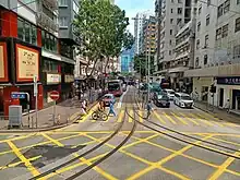 Hong Kong Tramways tram stop in Tin Lok Lane.