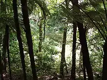 While originally forested, the island developed into pasture by the mid-20th century.[3] From 1984, the island has been the focus of a wide-scale native forest regeneration project, where over 250,000 native plants have been propagated on the island.[4] The island was chosen as a unique and protected place to provide a public window for rare New Zealand native birds on the edge of a large city and it also lacked introduced predators such as mustelids which were present on the mainland. At that time, although the island was devoid of suitable habitat and food sources, the hope was that native forest would regenerate naturally. It became apparent that natural afforestation was happening very slowly because a forest can only grow at its margins, and the island was covered mostly with dense grass and bracken fern. A plan was formulated to establish a nursery to collect cuttings and seed in order to expand the small pockets of forest habitat that were left in some of the valleys. Pōhutukawa was chosen as the main tree as it would eventually provide perches and roosts for birds who would then excrete the seed of the fruits that they had been eating, which would then germinate around the pōhutukawa.[2]