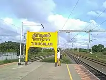 - ↑ "Soon long distance trains may halt at Tirusulam stn". The Times of India. Chennai: The Times Group. 23 May 2012. Retrieved 15 December 2012.