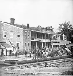 In 1865 Corinth briefly fell into Confederate hands again, and the hotel was used as a supply magazine. When leaving town, the Confederate army under John B. Hood burned the hotel, in order to prevent the Union army from taking control over the supplies.[2][3][4]