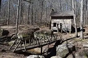 The park was among those constructed in Mississippi by the Civilian Conservation Corps in the 1930s. CCC Company 3497 began work creating the park in April 1935; the park opened to the public in May 1939.[2] Many of the original facilities are extant, including several buildings, trails, picnic tables, campgrounds, cabins and a fishing pond used by the CCC workers themselves. The rustic quality of the CCC structures resulted from the use of native materials, their original designs, and the craftsmanship of the builders. While most of the facilities in Mississippi were built of wood, Tishomingo and Wall Doxey state parks feature substantial use of stone construction.[11]