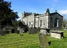In 1066, at the time of the Norman Conquest, Tissington was held by a number of owners, including Gamal who had oversight over a number of manors in Derbyshire,[19] and by 1086, the Domesday Book recorded the lord of the manor was also the wider tenant-in-chief, Henry de Ferrers. At this time there were only 12 villagers and a mill recorded,[20] which was thought to be the Bradbourne mill as both Tissington and Lea Hall were then part of that larger manor.[21] St Mary's was a chapel of ease dating from the 12th century, it was built on a moated fortification with a ha-ha, and the Ferrers gave the local tithes to Tutbury Priory. Geoffrey de Cauceis, a descendant, granted in 1205 to Godard de Bradbourne the manor of Bradbourne. However, All Saints Church in Bradbourne and its four chapeleries including Tissington St Mary's, parish lands, including a tithe in Lea Hall and Aldwark went to Dunstable Priory - Geoffrey's local monastery as he also held a manor near Northampton. [22][23]