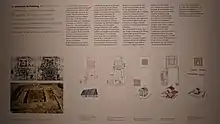 Although some interest had been shown in the site in 1928, serious archaeological excavations began in 1968 and continue today. These have been coordinated by Luxembourg's National Museum of History and Art with the assistance of specialists from the University of Missouri in the 1960s. In particular, the digs have unearthed the main residential area in the centre of the plateau and the public or recreational area, a few hundred meters to the south east. Both are located to the west of the farm road through the site which loosely follows the path of the main Celtic road that connects the two gates of the oppidum. There is also evidence of metal working and coin-minting activities long before the Roman conquest.[4]