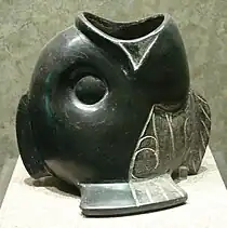 At the end of the Ayotla, however, around 1000 BCE, there is another abrupt change in ceramics: figurines of costumed males give way to those of nude females, and Olmec-derived iconography evolves into a more native appearance, changes likely reflective of a change in religious ideas and practices.[8]