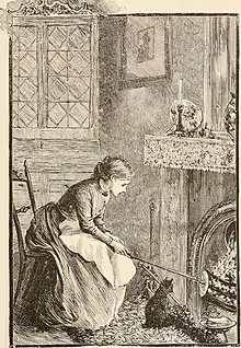 A maid uses a toasting fork in the bedroom fireplace in Donald and Dorothy (1891) by Mary Mapes Dodge